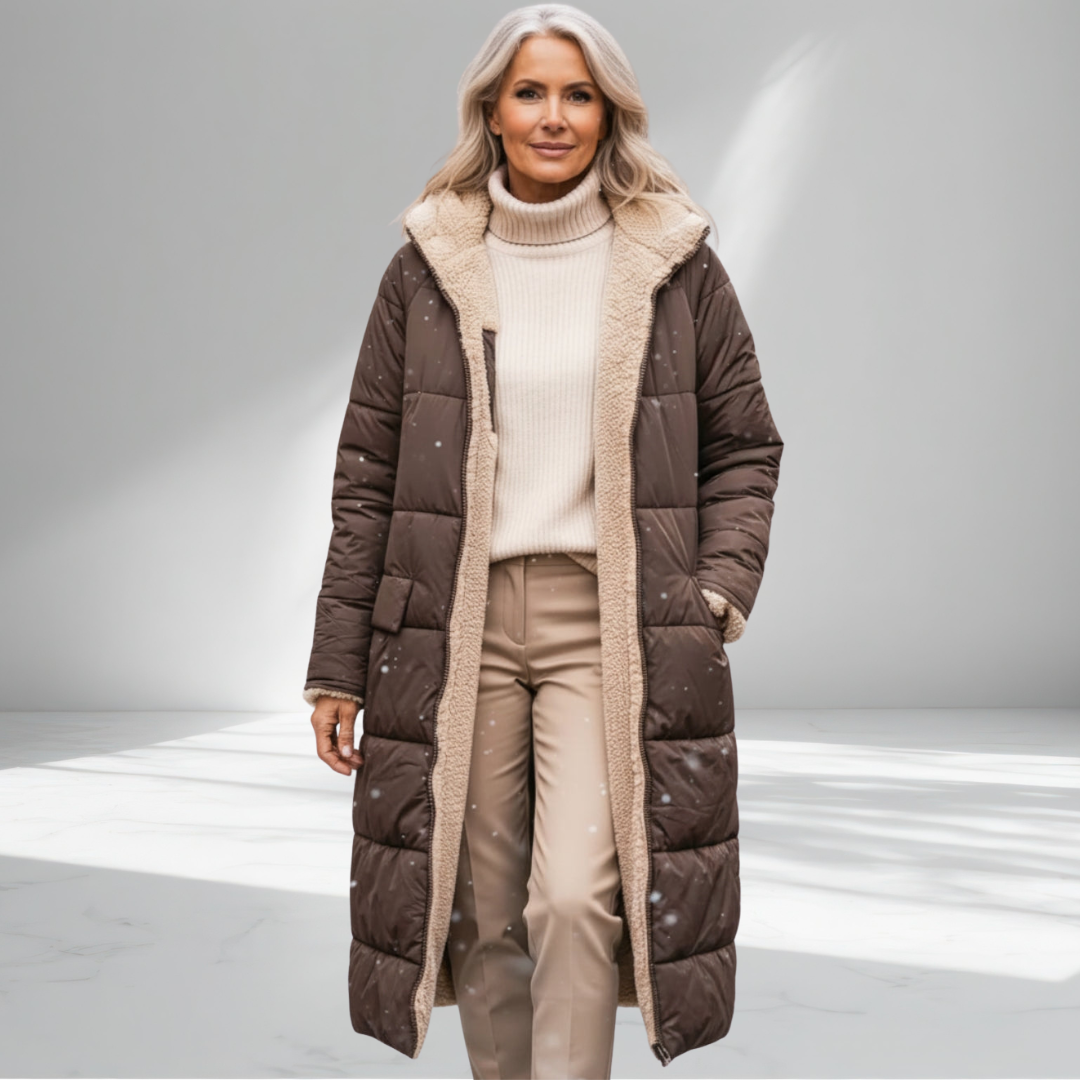 Tento zimní kabát je navržen pro ženy, které chtějí projít chladnými dny v klidu, teple a s přirozenou elegancí. Měkká vnitřní podšívka vytváří pocit útulného pohodlí, zatímco prošívaný vnější povrch pomáhá chránit před chladem a větrem.