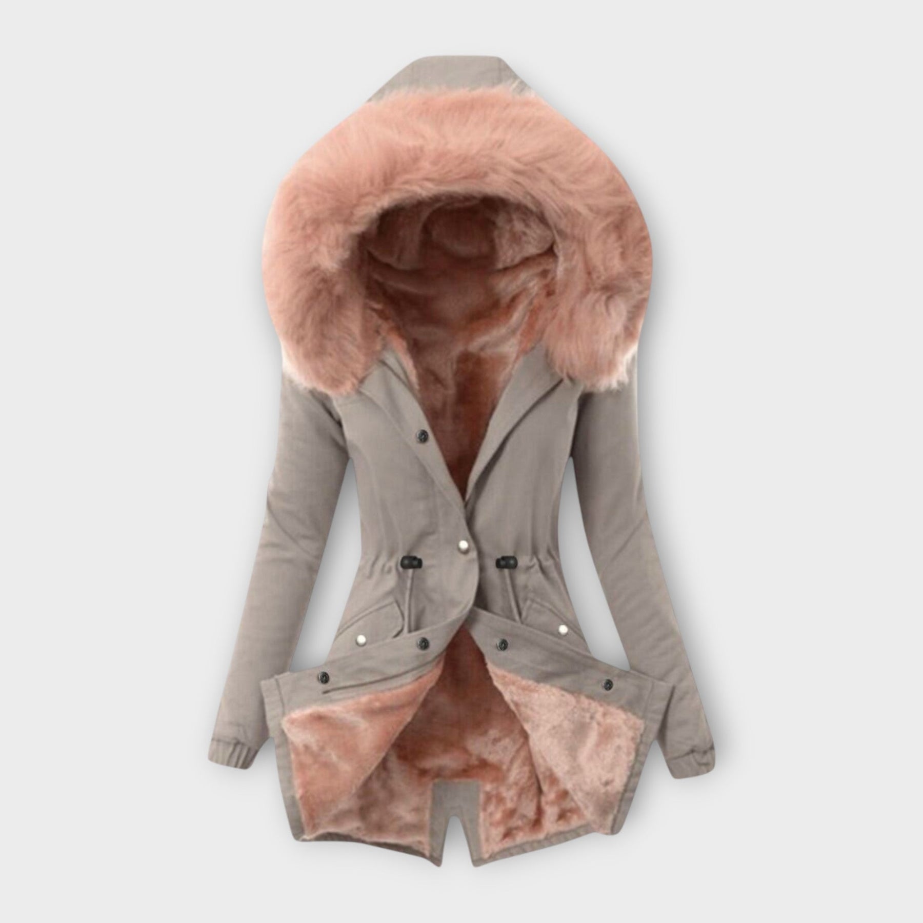Generózní kapuce je lemována měkkou umělou kožešinou, která nejen chrání před větrem a počasím, ale také dodává nádech elegance.